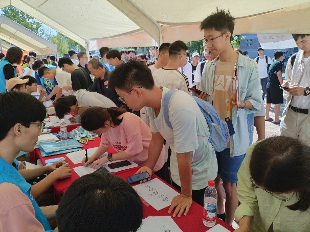 清晨的学院报到处早已一片繁忙,为了帮助同学们迅速顺利地完成报道工作,材料学院的学长学姐以及部分新生组成志愿小队,在每一个环节熟练高效地为新生办理报道手续。校领导、学院领导、辅导员老师也早早来到现场,与家长同学们亲切交流,指引报到流程、解答疑问。