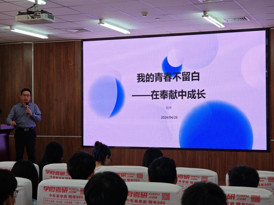 赵庚以“我的青春不留白——在奉献中成长”为题进行宣讲。他结合自身的学习工作经历,生动地诠释了如何在开拓视野、促进成长、养成习惯三方面提升自身的综合素质。他指出,学生干部要珍惜自己的机会,在工作中学会理解,进而做到发自内心的谦虚;做到妥协平衡,勇于承担责任,在委屈中提升自己;敢于打破常规不断创新,在实践中完善细节,最终磨练出“无我”的素质,把自身从优秀提升到卓越。
