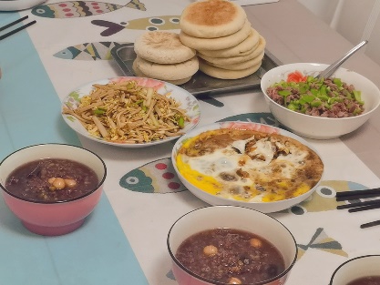 有亲自下厨,为父母做饭。虽然做的“黑暗”料理不是那么可口,但在父母眼里那就是最可口的美味。
