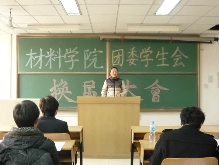 2012年3月2日,材料学院团委学生会换届大会在kaiyun体育官网登录入口南院九教111教室准时开始,09届的学长们退出了前台,10届的我们即将走上学生会常委的舞台。