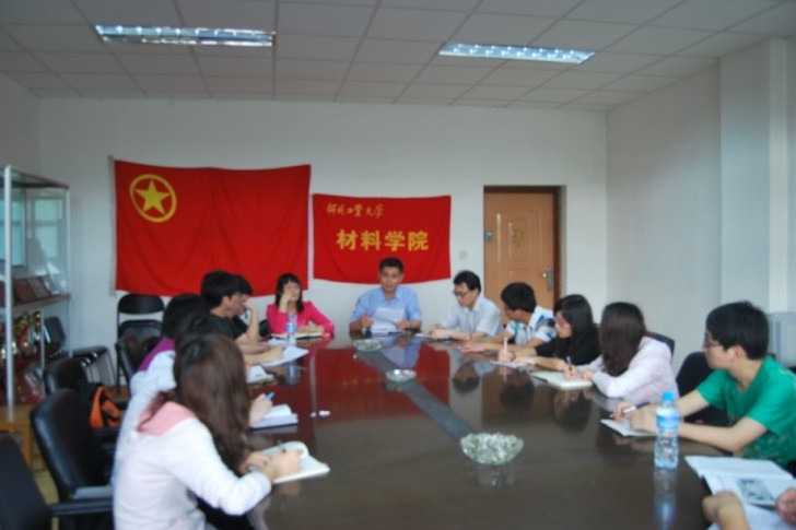 2012年5月3日下午四点二十分,材料学院组织学生干部学习了省委书记张庆黎同志、省长张庆伟同志来校调研的重要讲话精神,并结合文件内容与自身发展展开了积极讨论。参加学习的还有学院党委副书记张宏标老师和各年级辅导员。