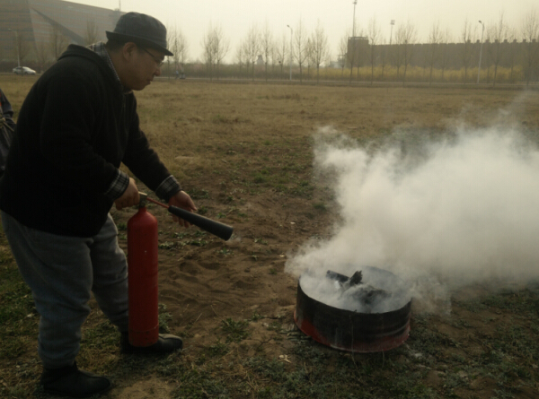 在演习前,工作人员向学生介绍了两种实验室常用的灭火器:二氧化碳灭火器和干粉灭火器。工作人员在讲述灭火器的使用方法和注意事项的同时,也联系起了电影时常出现的桥段并时不时做出各种夸张的动作,吸引着大家的注意力。同学们也都全神贯注的听着工作人员的描述,并对使用灭火器表现了极大的兴趣,纷纷打量着灭火器跃跃欲试。