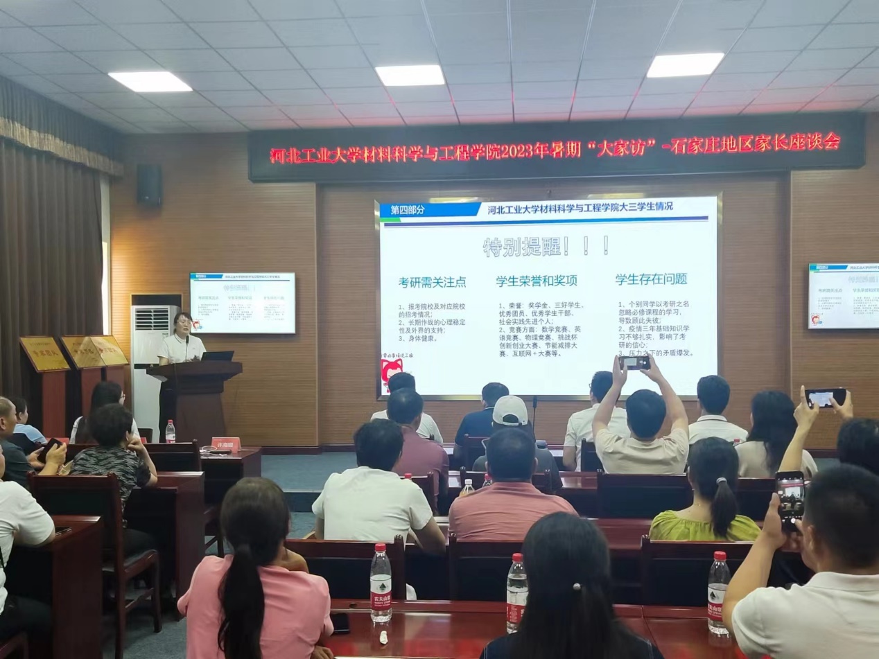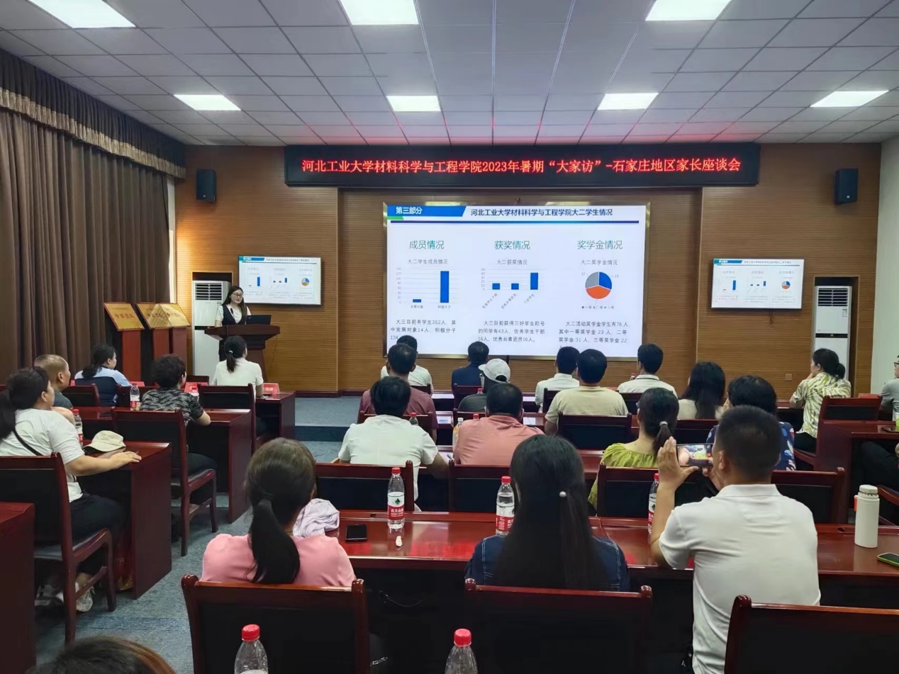 2023年7月18日kaiyun体育官网登录入口材料科学与工程学院赴河北省石家庄市举办了石家庄市及周边地区家长见面交流会。学院院长郑士建、教学实验中心主任夏兴川、团委书记许海媚、金属材料系支部书记杜安、无机非金属材料系教授薛刚、机非金属材料系副教授孟军平、金属材料系副教授沈春光、金属材料系讲师姚凯、思想政治辅导员王珺、刘曌、李昱和40余名石家庄市及周边地区同学家长一起参加了本次会议。