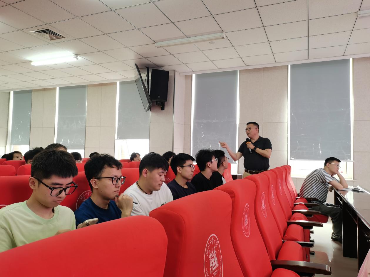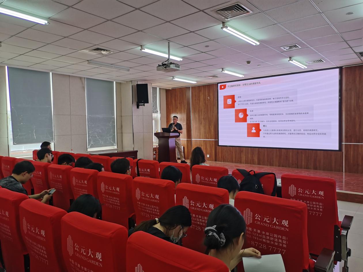 2025年5月30日下午14:00,材料科学与工程学院2024-2025春季学期党课培训第八讲在机材楼514报告厅举行。马岱书记以“学习学风与未来”为主题,为学院四十余名预备党员及发展对象带来一场生动有趣的授课。马书记热情地与同学们互动交流,用《庄子》中的一则小故事引发关于学习与认知的思考,继而告诉同学们“学习的本质不是做加法,而是做减法”。随后马书记带领同学们学习了毛主席的著作《改造我们的学习》,了解当时的历史背景,熟悉其重要意义,强调作风问题。