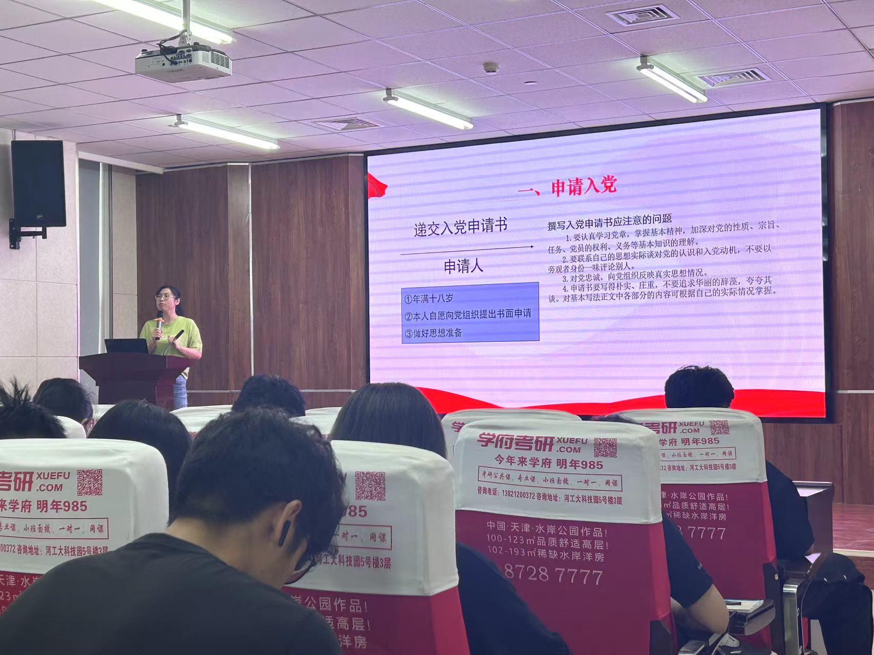 2024年6月7日,材料科学与工程学院2023-2024学年春季学期党校培训第七讲在机材楼514报告厅开展。本次党课以“学思践悟,以知促行——《中国共产党发展党员工作细则》解读”为主题,由学院组织员杨璐一担任主讲人,学院积极分子百余人参会。