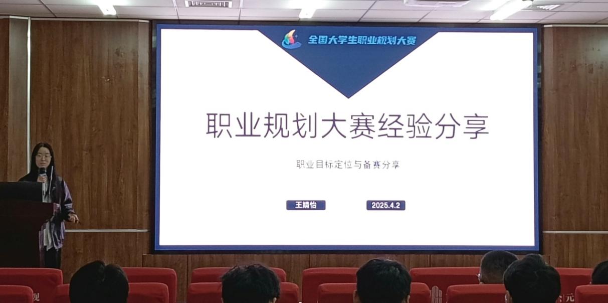 最后,王婧怡同学细致地分享了在第二届全国大学生职业规划大赛中的经验。她从PPT制作讲起,强调逻辑清晰和重点突出的重要性。在演讲稿展示方面,她分享了如何通过简洁有力的语言和自信的表达来吸引评委的注意力。她还详细介绍了省赛的流程,包括项目提交、初赛筛选和现场答辩等环节。最后,她对自己在比赛中的成绩进行了复盘,分析了成功经验和不足之处,提醒同学们在备赛过程中要注重细节和时间管理。王婧怡同学的分享为同学们提供了的大赛备赛指南,激励大家在未来的比赛中勇攀高峰,同时也为同学们做好学业规划提供了宝贵的经验与方法。宣讲结束后,到场同学也向学长学姐进行了提问交流。