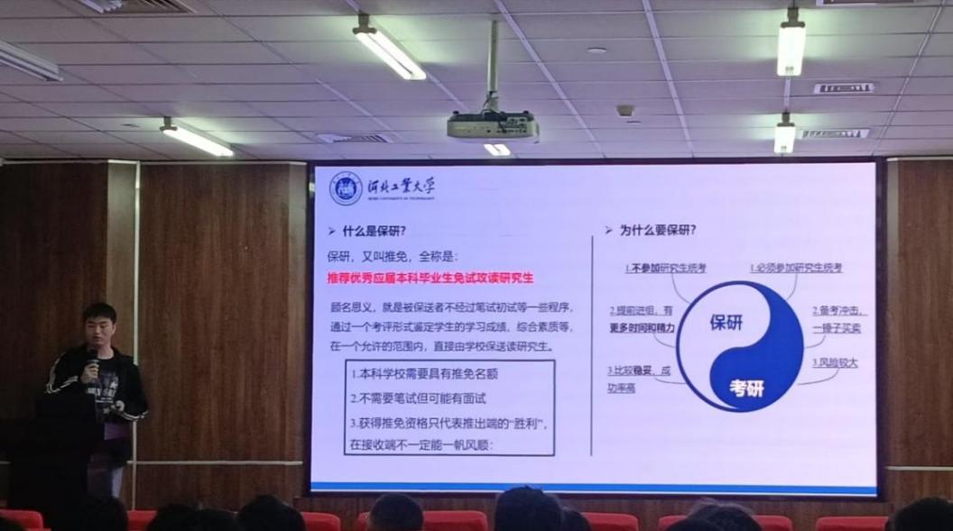 杨博同学在经验分享会上为同学们详细解读了保研全流程。他从"推免生"的定义入手,解释了保研与考研的区别。
