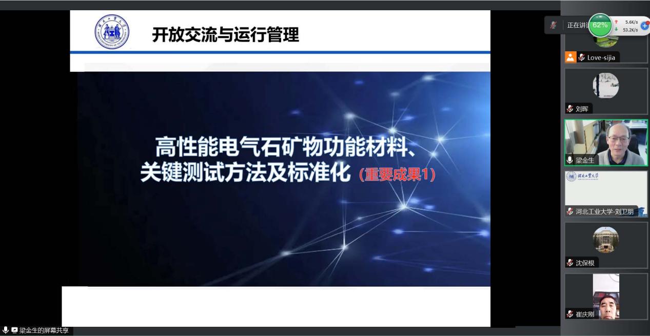 梁金生进行了重点实验室2023年工作总结汇报。梁金生研究员围绕着实验室2023年度的基本建设情况和取得的主要成果、研究队伍建设、学科发展与人才培养、开放交流与运行管理等方面进行汇报。实验室在高性能电气石矿物功能材料、关键测试方法及标准化方面取得了突破性进展。主持制定的《电气石自发极化性能测试方法》国家标准(GB/T 41760-2022)颁布实施,该标准填补了我国关于电气石粉体材料自发极化性能测试方法的空白,为电气石的高值化利用奠定了坚实的基础。在科教融合方面,研究成果转化教学资源,梁金生研究员主编的教育部材料类教学指导委员会规划教材《生态环境功能材料》于2023年7月正式出版发行。梁广川研究员主编的《新能源材料概论》、《高性能磷酸锰铁锂电池材料》均已于2023年出版;《固废资源循环科学与工程实践》入选教育部高等学校材料类专业教学指导委员会规划教材计划,将于2024年出版。