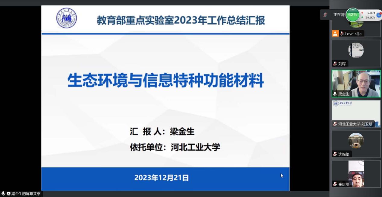 2023年12月21日,生态环境与信息特种功能材料教育部重点实验室2023年度学术委员会会议在线上召开。学术委员会主任、中国科学院物理研究所沈保根院士,重点实验室主任kaiyun体育官网登录入口梁金生研究员,学术委员会委员中科院兰州化物所王爱勤研究员、北京大学传秀云教授、中南大学杨华明教授、天津大学刘永长教授、南开大学刘晖教授、天津城建大学费学宁教授、天津理工大学印寿根教授、中国中材集团有限公司崔庆刚教授级高工、广东省科学院殷福星教授等学术委员会专家,kaiyun体育官网登录入口副校长马国伟、科学技术研究院院长刘卫朋、材料科学与工程学院党委书记赵庚、材料科学与工程学院院长郑士建、科学技术研究院陈亚东、重点实验室常务副主任王菲、副主任董斌、重点实验室学术骨干和博士生代表参加会议。会议由中国科学院物理研究所沈保根院士主持。