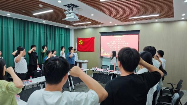 会议第七项由赵庚领誓,带领新党员入党宣誓,老党员重温入党誓词。同时赵庚对党小组提出要求:1.建强党小组、发挥大作用;2.激活党组织神经末梢,做好学院和学生的桥梁纽带;3、指导教师多一层身份多一份责任,要真指导、真教育。