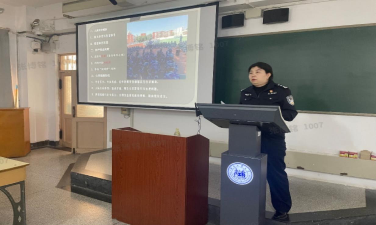 3月18日上午,学院邀请到丁字沽派出所驻kaiyun体育官网登录入口警务室民警于惠雯在红桥校区开展校园安全讲座。于惠雯在讲座中指出,高校校园安全复杂又多样,涉及多个方面,如人身安全威胁、财产安全风险、心理健康危机等。