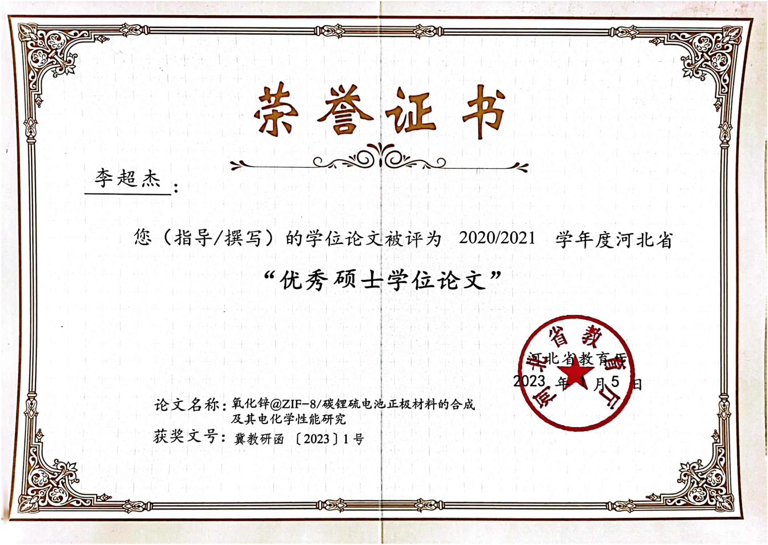 根据《河北省教育厅 关于公布2020/2021学年度河北省优秀博士、硕士学位论文评选结果的通知》冀教研(2023)1号文件通知,我院三名2021届硕士毕业生的学位论文获得2020/2021学年度河北省优秀硕士论文。