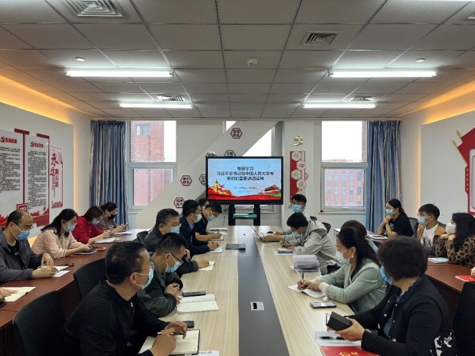 会上,尹书记组织与会师生逐字逐句研读《习近平在中国人民大学考察时强调坚持党的领导传承红色基因扎根中国大地走出一条建设中国特色世界一流大学新路》,学院党委委员、师生党支部书记等十余位参会人员先后做了交流发言。
