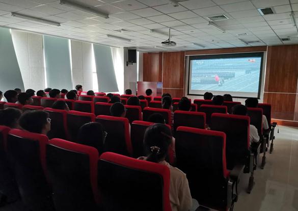 十点整,老师和学生们聚集在材料楼报告厅观看大阅兵。天安门广场的声音响彻云霄,隔着屏幕,身在报告厅的人们已经热血澎湃。阅兵仪式结束时,直播画面停在北京上空,7万羽和平鸽,7万只五颜六色的气球飞向天空,《歌唱祖国》的音乐不断地重复着,师生共唱爱国旋律,五星红旗迎风飘扬,胜利歌声多么嘹亮,歌唱我们亲爱的祖国,一同走向繁荣富强。观看仪式已经结束,但强烈的爱国情感仍在心中激荡,材料师生共同表示,在今后的学习与工作中,必定努力奋斗,为祖国的繁荣富强真正贡献自己的力量!