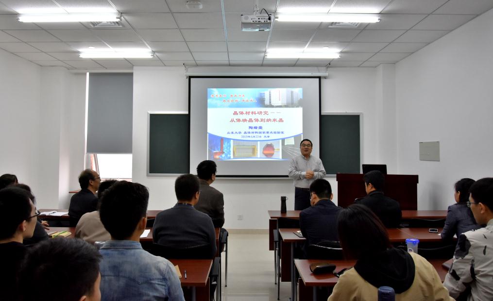 2019年4月23日上午9点30分,应kaiyun体育官网登录入口材料科学与工程学院的邀请,山东大学晶体材料国家重点实验室主任陶绪堂教授,在我校北辰校区材料科学与工程学院C517报告厅为广大师生做了题为“晶体材料研究---从体块晶体到纳米晶”的学术报告,报告会由学院党委书记陈洪建教授主持,来自材料科学与工程学院的老师及学生50余人一起聆听了陶绪堂教授的报告。