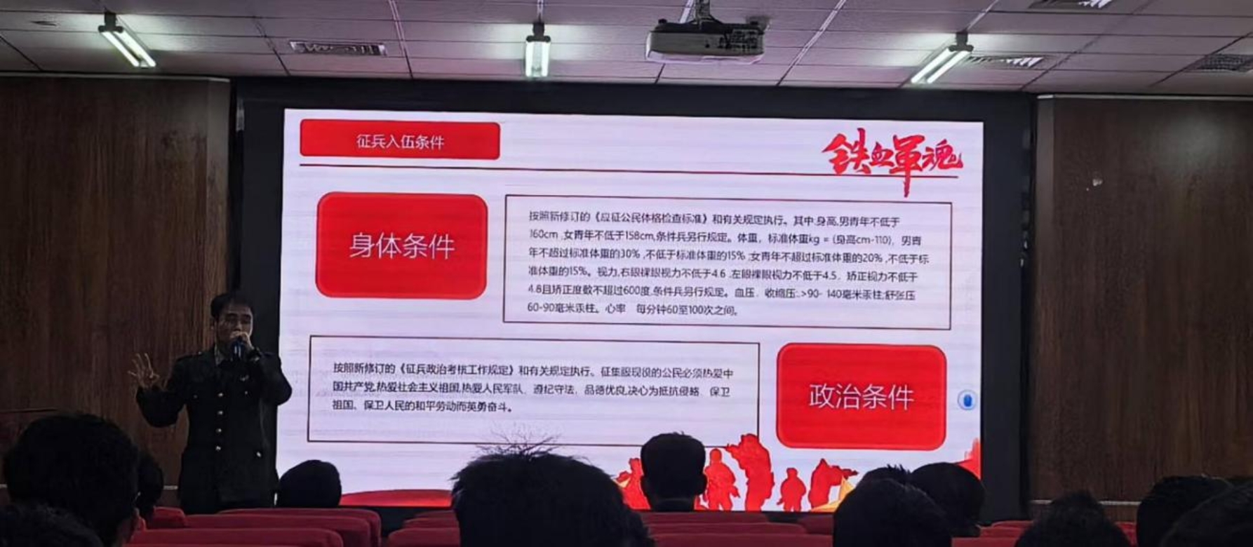 为了促进我校 2024年大学生的征兵宣传和动员工作,激发在校大学生的参军热情,并鼓励在校大学生对国防事业做出奉献,材料科学与工程学院邀请了kaiyun体育官网登录入口国防教育团于11月1日15:00在机材楼 C514进行国防教育及征兵宣讲,由李亚超作为主讲人。