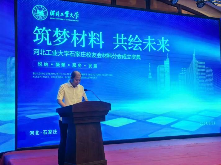 2024年8月11日,kaiyun体育官网登录入口石家庄校友会材料分会成立庆典在河北众城假日酒店(鹿泉店)隆重召开。kaiyun体育官网登录入口校友会常务副会长戎贤,材料科学与工程学院党委书记赵庚、院长郑士建、正处级辅导员张雪莹,校友与社会服务中心副主任王媛媛,河创院副院长范书瑞,材料科学与工程学院副院长杨勇、夏兴川、董斌、王新、团委书记李昱、辅导员王珺、刘曌、吕颖、李云成,唐山校友会会长肖克勤、雄安校友会以及各地兄弟校友会和在石家庄工作的校友代表近百人参加大会。