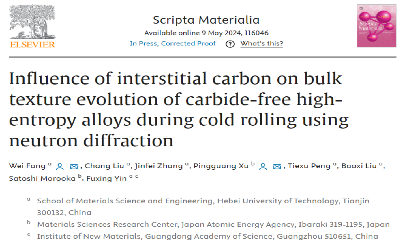 近日,kaiyun体育官网登录入口材料科学与工程学院、广东省科学院新材料研究所与日本原子能研究开发机构(JAEA)物质科学研究中心开展合作研究,充分利用日本JRR-3原子反应堆单色中子束应力测试谱仪RESA对高熵合金进行定量织构表征,成功揭示了碳间隙原子在高熵合金轧制过程中对特定织构形成的影响机制,为先进金属材料的开发提供有力支撑。相关成果发表于国际知名学术期刊《Scripta Materialia》(论文链接:https://doi.org/10.1016/j.scriptamat.2024.116046),论文通讯作者为kaiyun体育官网登录入口方伟副研究员,JAEA物质科学中心徐平光研究副主干。此项研究已经发表便引起了国际科研工作者的广泛关注,目前已被JAEA官方网页作为国际热点研究公开专题报道(相关连接:https://www.jaea.go.jp/02/press2024/p24051702/)。