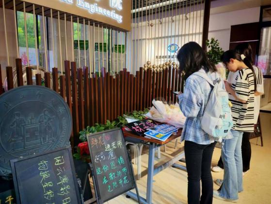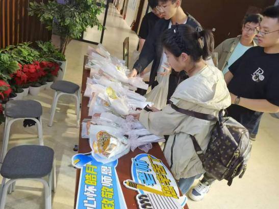 同学们有条不紊地做好一切准备工作,满怀期待在学院大厅盼望着老师的到来,他们用真挚的话语和芬芳花束向老师表达内心最甜蜜的祝愿,老师欣慰的笑容成为最美的风景。