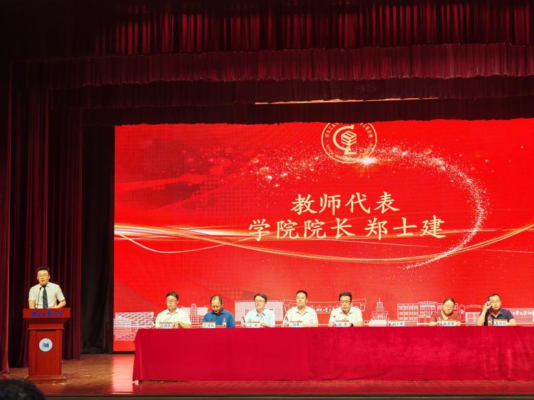 最后,学院教师代表郑士建总结致辞。他向毕业生表示祝贺,回顾了学生们的奋斗与收获,赞扬了他们的青春活力,鼓励他们坚定信念、担当责任,将个人理想融入中国梦,同时表达了对毕业生的殷切希望与祝福。