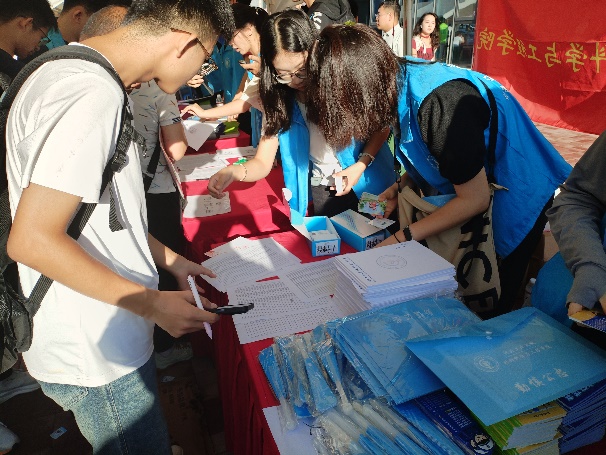 清晨的学院报到处早已一片繁忙,为了帮助同学们迅速顺利地完成报道工作,材料学院的学长学姐以及部分新生组成志愿小队,在每一个环节熟练高效地为新生办理报道手续。校领导、学院领导、辅导员老师也早早来到现场,与家长同学们亲切交流,指引报到流程、解答疑问。