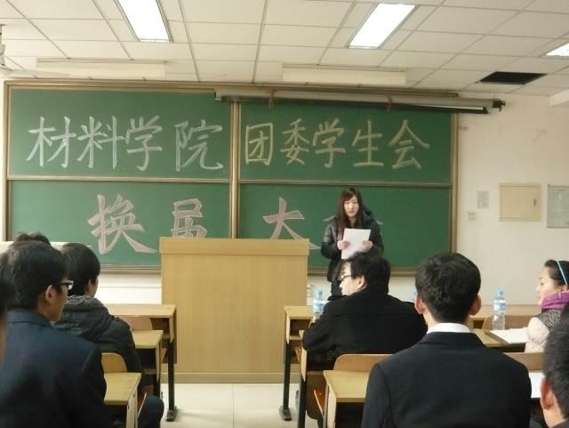2012年3月2日,材料学院团委学生会换届大会在kaiyun体育官网登录入口南院九教111教室准时开始,09届的学长们退出了前台,10届的我们即将走上学生会常委的舞台。
