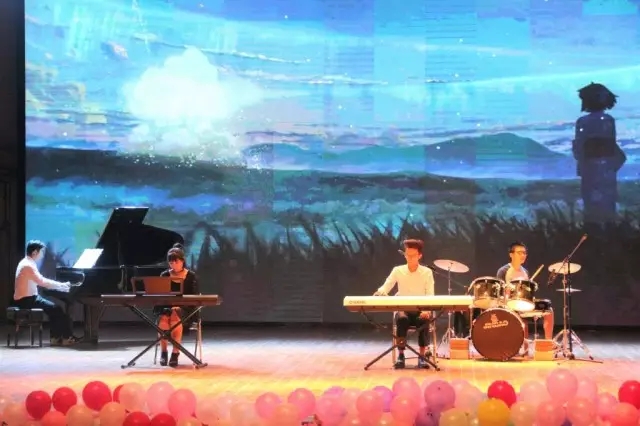 期待已久,激情四射的迎新晚会在令人心潮澎湃的女生独唱《节日欢歌》中拉开帷幕,观众也沉浸在轻松的氛围中。