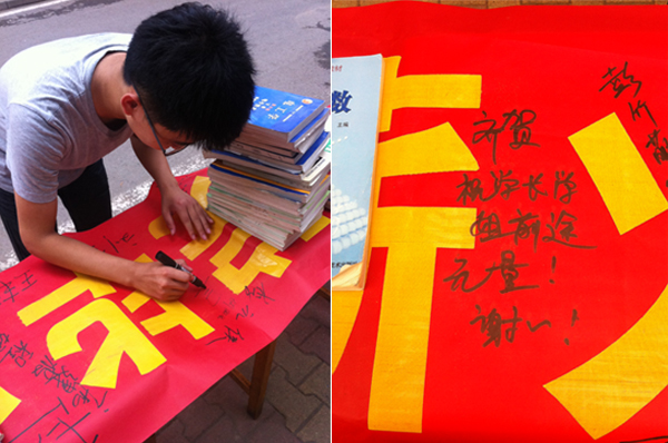 学院全体毕业生分别在我校东院校区和南院校区宿舍楼前参与了活动。 广大毕业生在签字活动中表达了要遵守学校的各项规定、保持良好的形象和精神面貌、维护校园安全稳定的意愿。低年级同学也纷纷向毕业生送上了美好的祝愿。同学们对活动表现出很高的积极性,纷纷表示一定会按照学校的要求文明离校,为学习生活了四年的母校留下欢笑、留下文明,为学弟学妹们作好表率。毕业生留下的不仅是自己的名字,更是为百年名校留下自己对母校的不舍和祝福,留下凝重及深情的一笔。