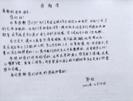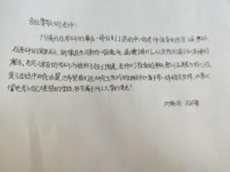 会后,收到温暖的同学们手写了感谢信和广发朋友圈,学生们表示备受鼓舞,考研的信心更足了,同时对学院和学校资助中心的温暖表示感谢。