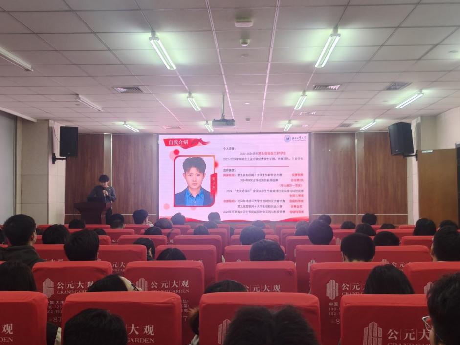 在科研竞赛方面,他以自身经验为例为同学们讲述了本科生如何搞科研、如何搞好科研的过程,并展示了个人科研成果,他强调科学研究是一项艰苦的工作,来不得半点虚伪,但只要你积极投入,耐得住寂寞,刻苦攻关,就总能有所成就。