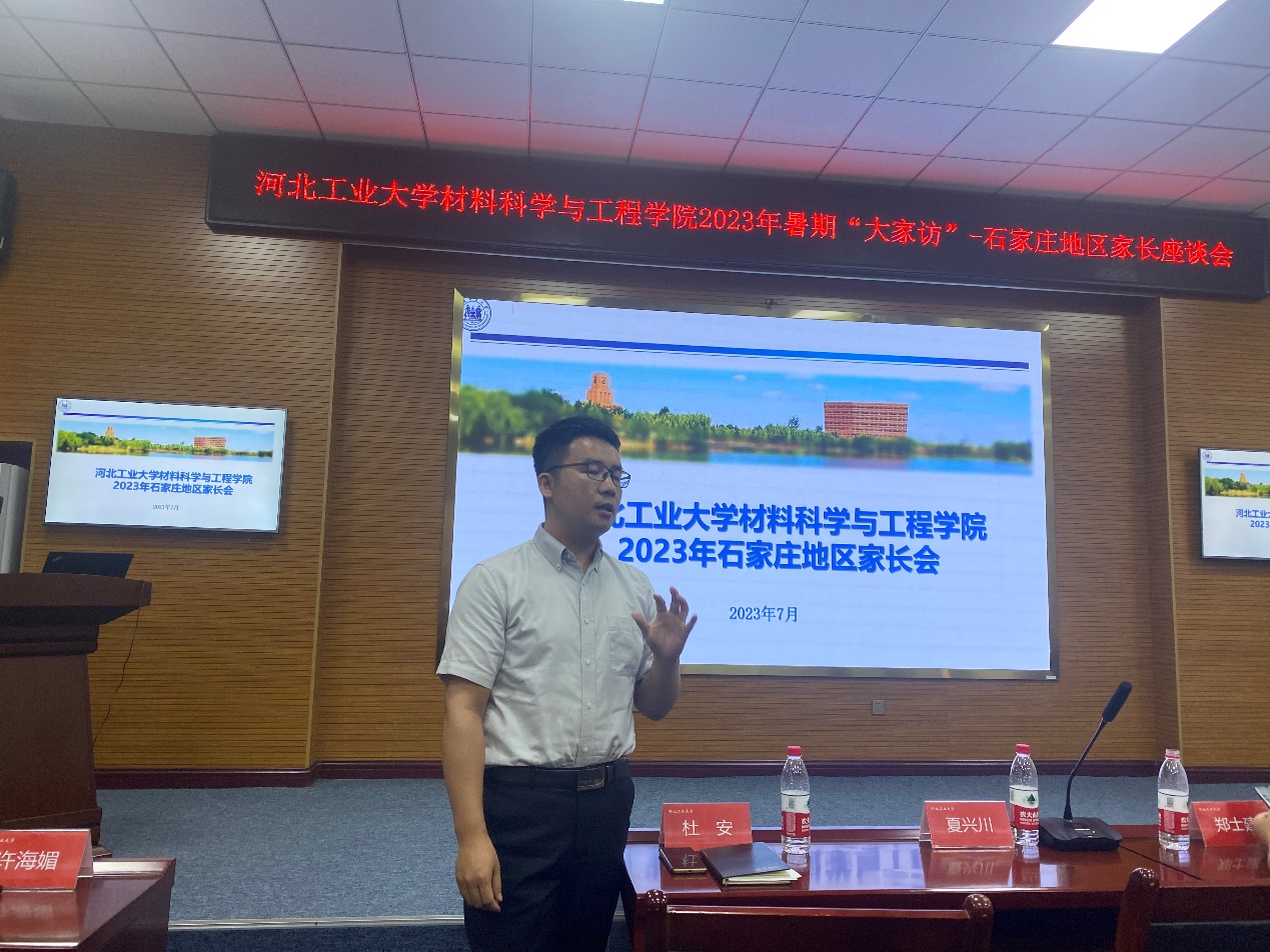 2023年7月18日kaiyun体育官网登录入口材料科学与工程学院赴河北省石家庄市举办了石家庄市及周边地区家长见面交流会。学院院长郑士建、教学实验中心主任夏兴川、团委书记许海媚、金属材料系支部书记杜安、无机非金属材料系教授薛刚、机非金属材料系副教授孟军平、金属材料系副教授沈春光、金属材料系讲师姚凯、思想政治辅导员王珺、刘曌、李昱和40余名石家庄市及周边地区同学家长一起参加了本次会议。
