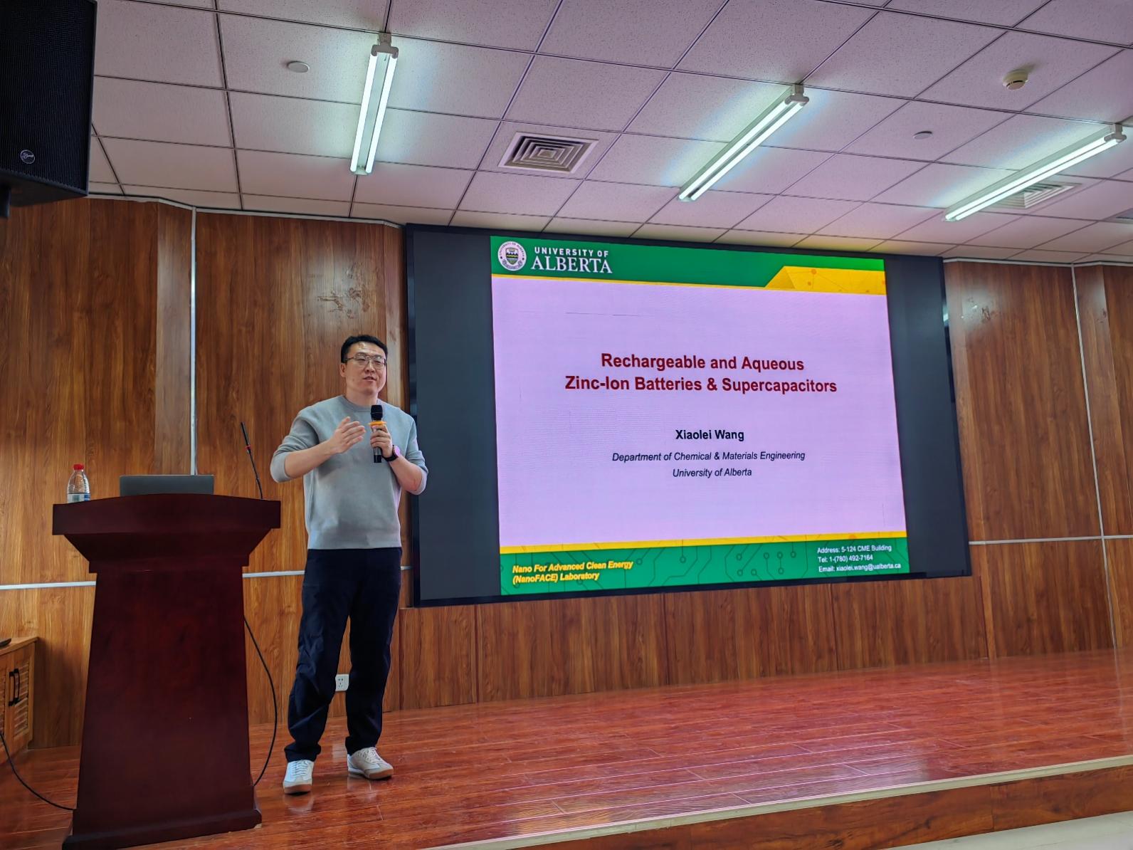 2026年1月15日上午,加拿大阿尔伯塔大学(University of Alberta)王晓磊教授应邀在北辰校区机材料 C514 会议室为我校师生作题为《Rechargeable & Aqueous Zinc-Ion Batteries and Supercapacitors》 的学术报告。本次报告由材料学院副院长杨勇教授主持,学院教师、研究生及本科生等近百人参加,现场学术氛围浓厚。