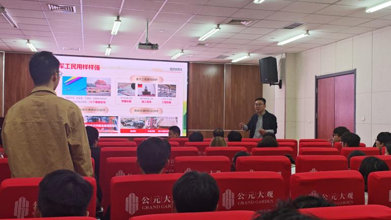 其次,刘峰超研究员以“冶金金属材料的复合”为切入点,结合当前国家对复合材料的需求,详细阐述了其内涵、发展历程以及在科研领域中的重要地位。专家通过与同学们熟悉的生活的事物进行类比,帮助在场同学迅速理解了这个概念。