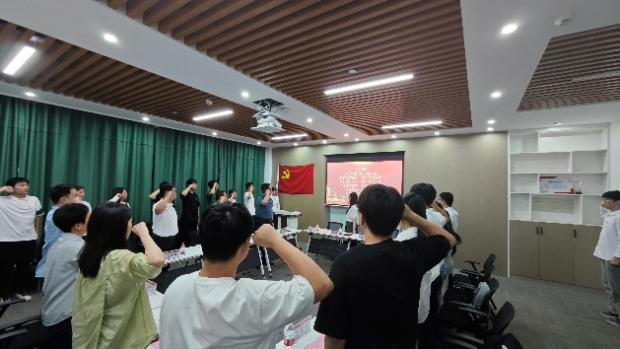 会议第七项由赵庚领誓,带领新党员入党宣誓,老党员重温入党誓词。同时赵庚对党小组提出要求:1.建强党小组、发挥大作用;2.激活党组织神经末梢,做好学院和学生的桥梁纽带;3、指导教师多一层身份多一份责任,要真指导、真教育。