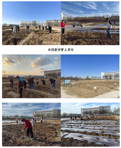 按照学校对于责任田整体要求,学院于3月初组织4场志愿服务,学院师生共同参与,对学院责任田进行了翻新、覆膜、灌溉、施肥以及文化宣传等工作,为责任田的种植坚实基础。学院教师带头劳动,同时发挥田野课堂的场地优势,开展多场生动的主题班会,教育引导学生热爱劳动、珍惜劳动成果。