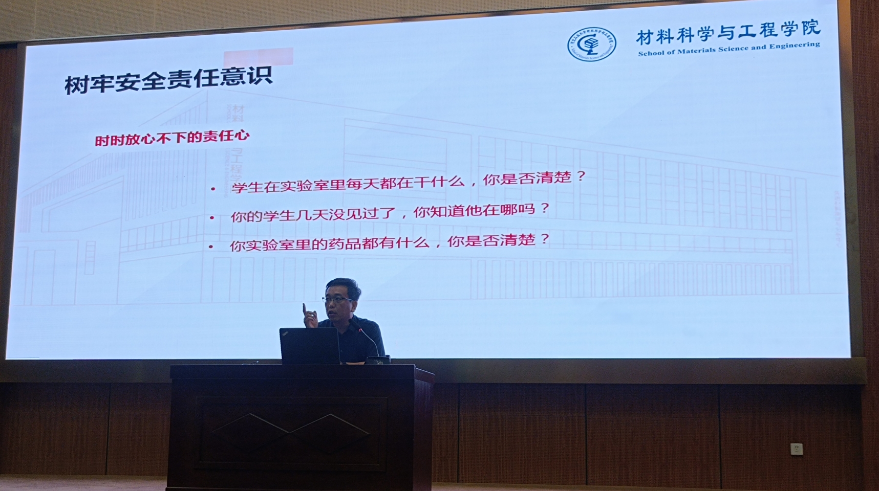 2024年6月14日下午,材料科学与工程学院在机材楼报告厅举办安全工作大会。学院邀请安全工作处处长刘征为全体教职工进行安全教育培训。学院领导班子成员和全体教职员工出席大会,大会由院党委书记赵庚主持。