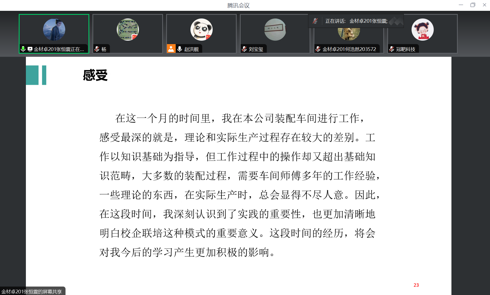 评委老师们认真听取了每位学生的汇报,对同学们两个月以来的努力予以充分肯定,也针对同学们当前的研究进度、研究方法、可行性、存在问题、改进空间以及解决方案进行了逐一提问、讨论、点评,并提出进一步完善建议,同时,评委老师们还针对学生的文档材料进行了仔细检查,提出了许多宝贵的意见和建议,为学生高质量完成毕业设计提供思路。