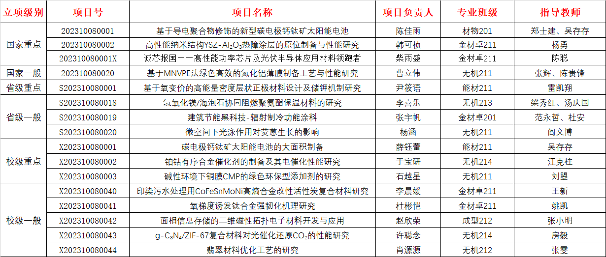 2023年6月20日,校团委公布了我校“喜迎百廿校庆,科创筑梦未来”2023年大学生创新创业训练计划项目立项结果。其中,我院2023年大学生创新创业训练计划项目成功立项16项,分别是国家级重点项目3项,国家级一般项目1项,省级重点项目1项,省级一般项目3项,校级重点项目3项,校级一般项目5项,详细结果见《2023年kaiyun体育官网登录入口大学生创新创业训练计划项目立项清单》。